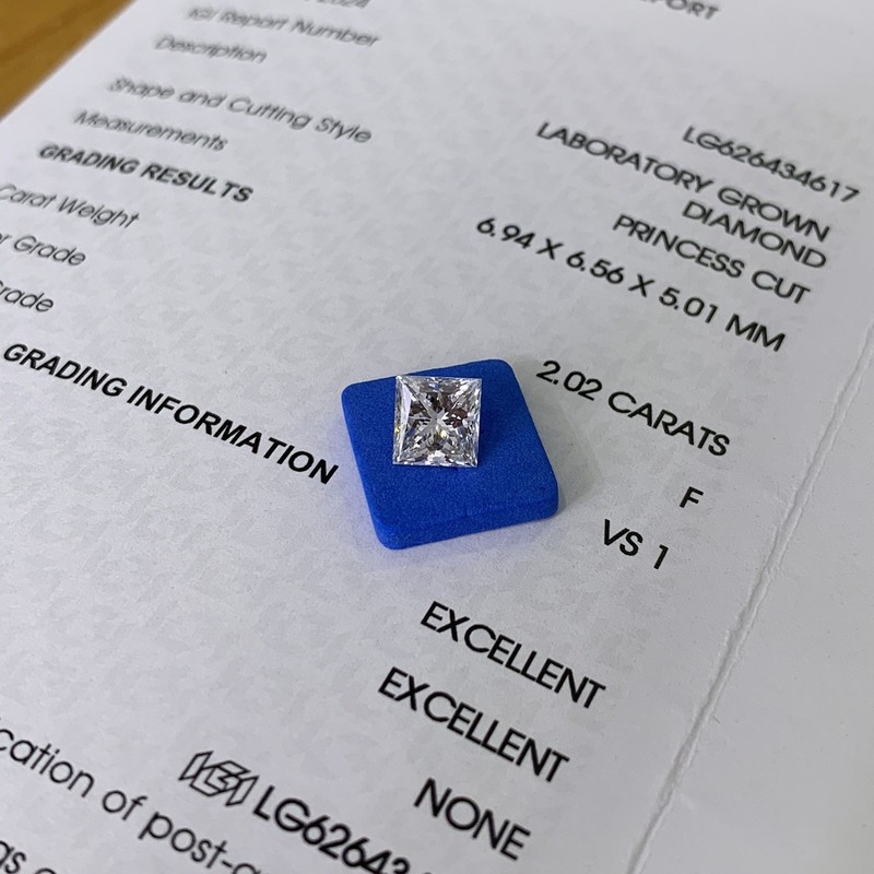 2.02CT F VS1 2EX CVD ラボ成長ダイヤモンドプリンセスカット IGI証明書