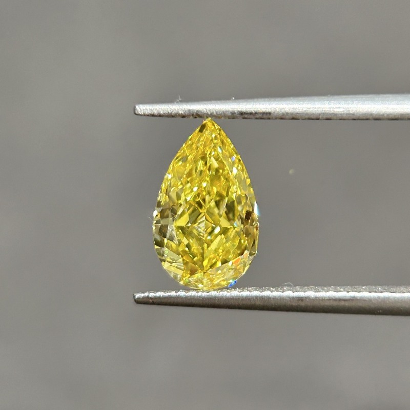 1.39ct 実験室で育てた ダイヤモンド・ピアスカット CVD 鮮やかな黄 VVS2 2EX N IGI ∙ LG618452245