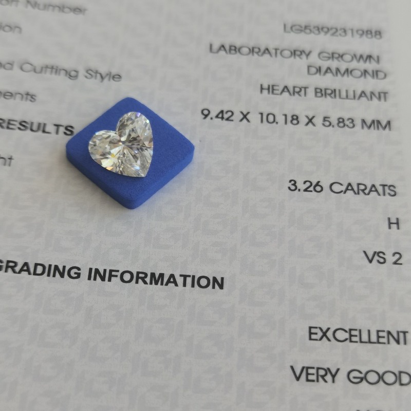 3.26ct 実験室で育てた ダイヤモンド心臓切断 CVD H VS2 2EX N IGI